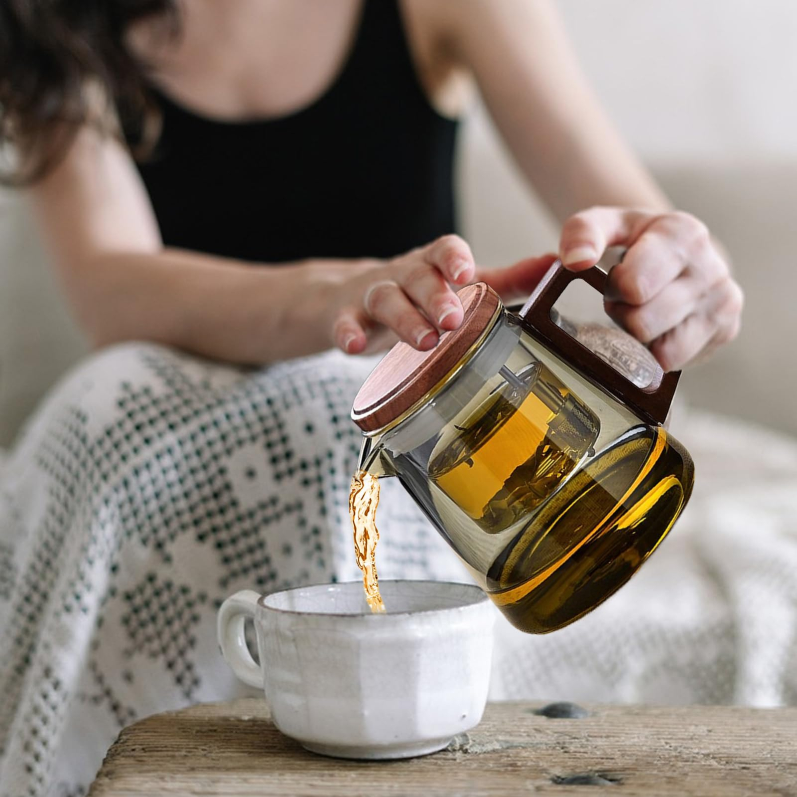 Designul modern este completat de aspectul fumuriu al sticlei, care adauga un plus de rafinament si stil. Ideal pentru ceaiuri vrac, plante sau infuzii, fiind perfect atat pentru uz zilnic, cat si pentru momente de relaxare.